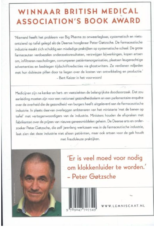 Het boek van Peter Gøtzsche is bekroond met de British Medical Association's Book Award. Bert Keizer heeft het voorwoord bij de Nederlandse vertaling geschreven. Hij zegt: 'Niemand heeft het probleem van Big Pharma zo onweerlegbaar, systematisch en nietsontziend op tafel heeft gelegd als de Deense hoogleraar Peter Gøtzsche.